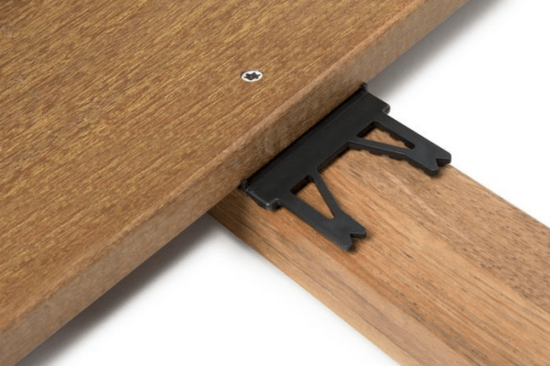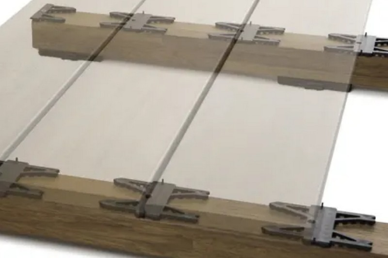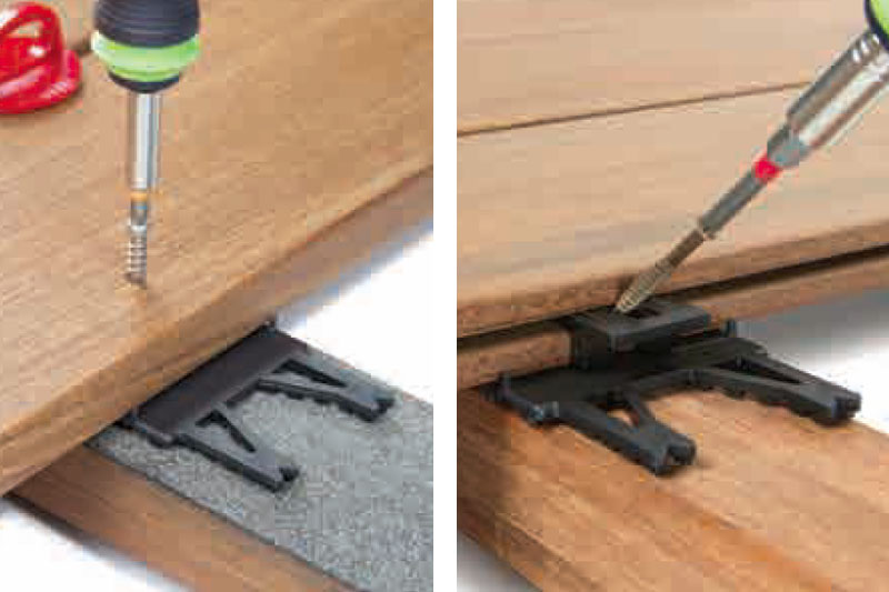 Seules les cales de départ et fin en périphérie de terrasse sont vissées. La rigidité et ses ergots lui permettent de se placer naturellement en ligne sur la lambourde ce qui rend sa pose facile et rapide.