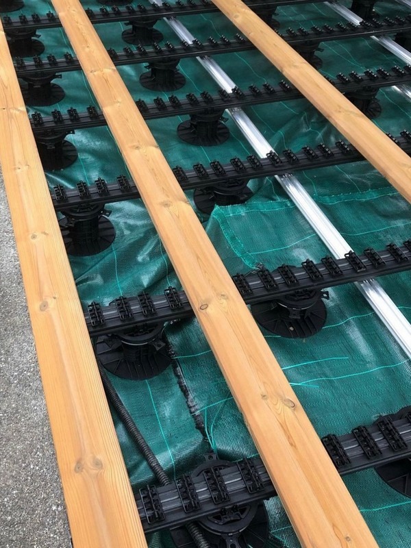 - Les lames sont rainurées sur le dessous et s’assemblent sur les lambourdes Alu de type pr24 ou pr39 qui sont pré-équipées de Clips .