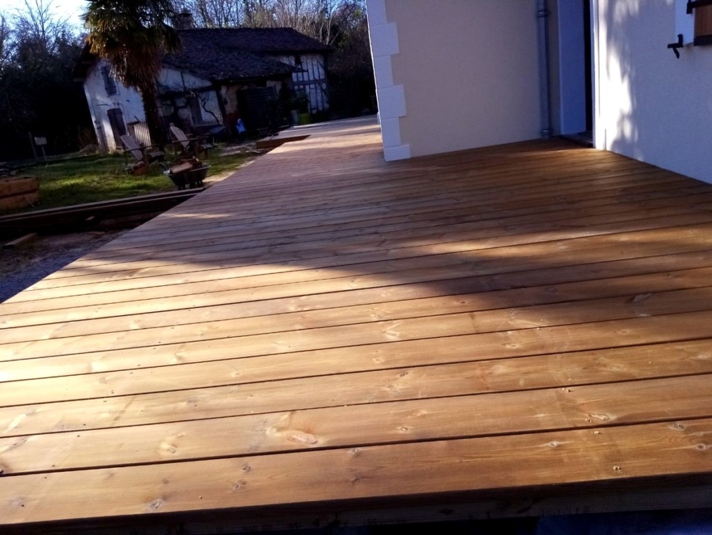 - Maintenir la teinte du Pin Sylvestre en utilisant un saturateur, à appliquer deux fois par an, de la marque DECKiBOIS.