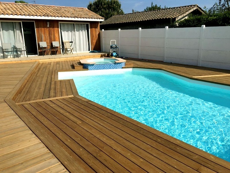 Le Pin Sylvestre appelle également pin du nord est une essence très prisée pour son excellent rapport qualité-prix. Une terrasse en bois résineux de Pin Sylvestre est une option économique, bénéficiant d’un traitement anti-termites et anti-champignons, ce qui lui confère une longévité accrue, passant de la classe 3 à la classe 4 grâce au traitement autoclave. Deux teintes de traitement, vert et brun, sont disponibles, mais ces différences sont purement esthétiques et n’affectent pas la qualité du bois.