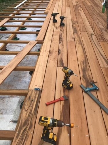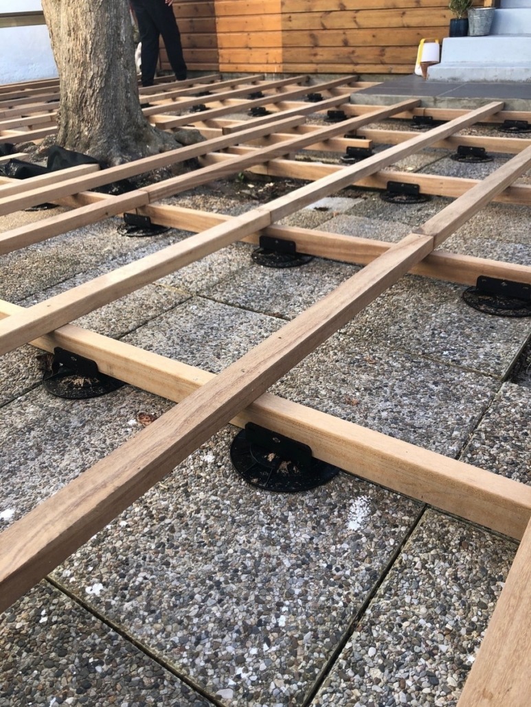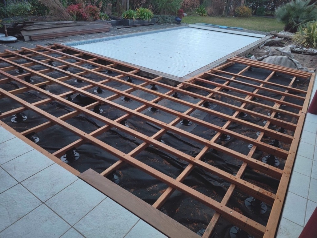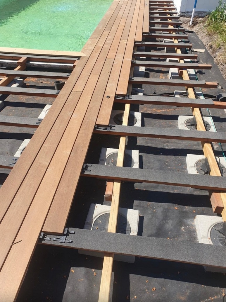 - Vous créez un véritable PLANCHER, similaire à une charpente, conférant à la terrasse une rigidité accrue. Vous ne ressentirez pas d’effet de rebond lorsque quelqu’un s’approche.