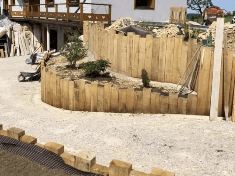 Optez pour des traverses en chêne naturel pour aménager votre espace extérieur.